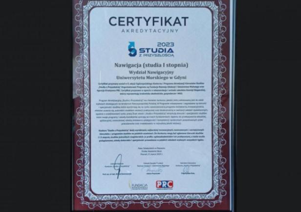 The Faculty of Navigation of Gdynia Maritime University has once again been awarded the Certificate of Accreditation and the Employers' Award at the 8th edition of the "Studies of the Future" national competition and the accreditation programme.