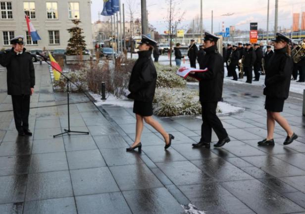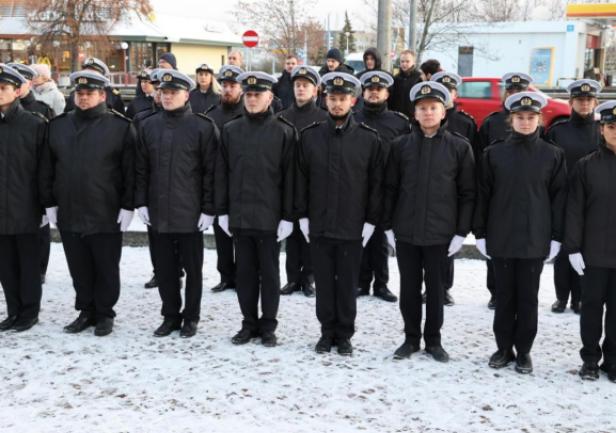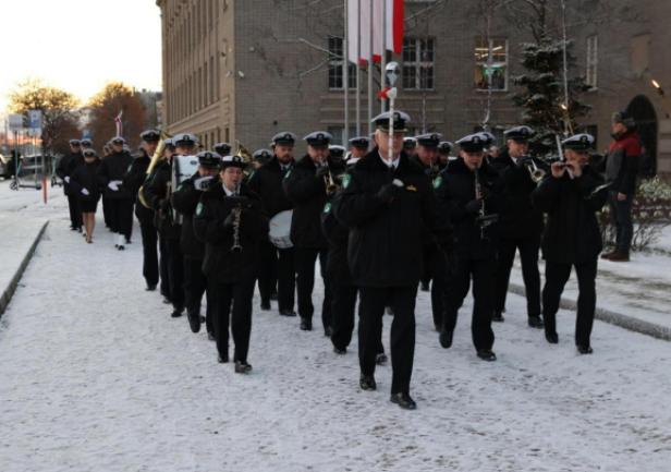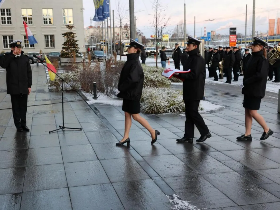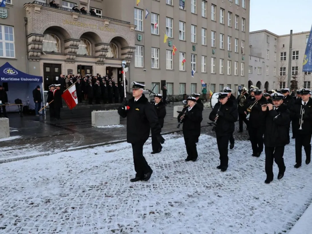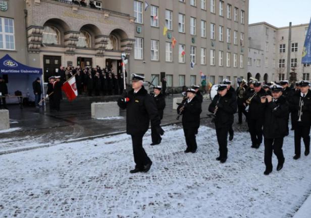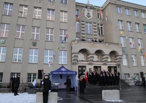 GMU staff, the Senate, students and graduates all gathered in the square in front of the University building. The Gdynia Maritime University banner was ceremonially introduced by the GMU Guard of Honour, accompanied by the Border Guard Unit's Maritime Orchestra. During the raising of the Polish Navy's flag, the orchestra played the National Anthem.