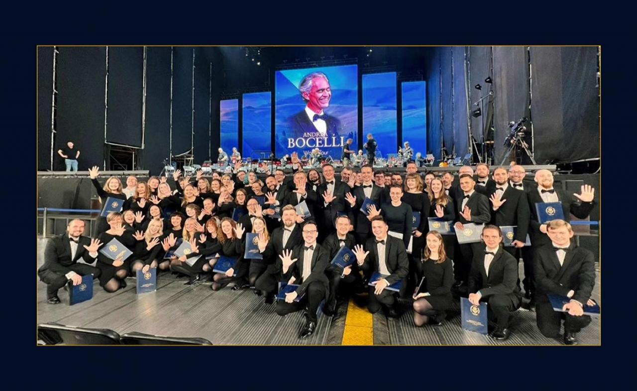 On Saturday 26th August 2023, the Gdynia Maritime University Academic Choir took to the stage for what was its fifth performance alongside Andrea Bocelli - the 'world's most beloved tenor'. The two-hour concert at "stadion słąśki" in Chorzów was enjoyed by the classical artist's largest audience in Poland to date. Those in attendance were treated to a repertoire of pieces from famous operas, Italian folk songs, and film hits.