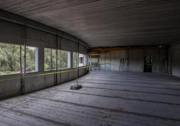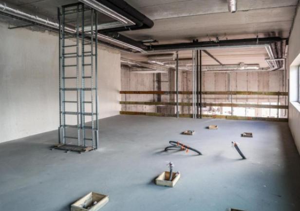 Outside area: rainwater and sewage pipes are being installed. Work on the building’s elevation has now begun as part of stage 2.