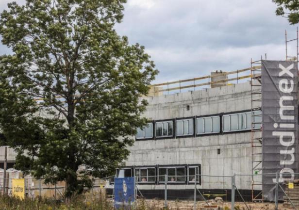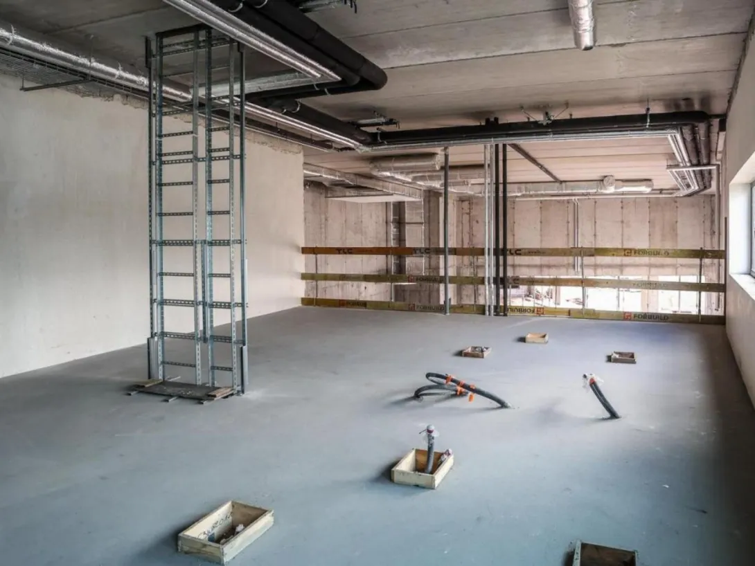Stage 1:Reinforced concrete and masonry structural works and installation of the steel structure in the warehouse have been completed. Window joinery and aluminium showcases are currently being installed. The installation of the sanitary systems is in progress: heating and air conditioning, sewage pipes, hydrant installation and ventilation. The installation of flush-mounted electrical installation and electrical trays is in progress. Work on the roof is in its final stages.