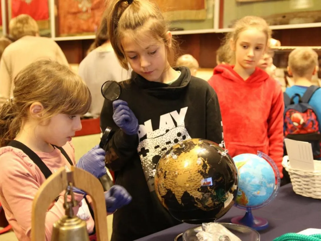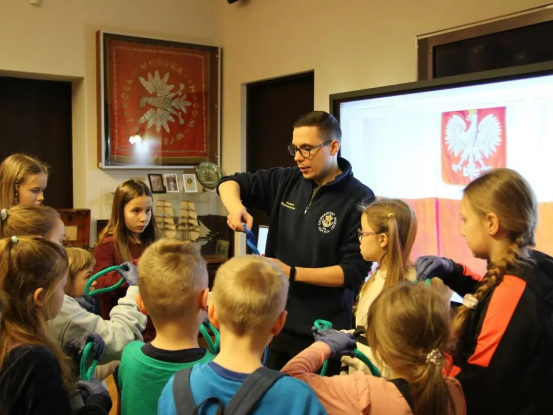 The children took great interest in the exhibits, examining many items using a magnifying glass. They also listened to a mini lecture on the maritime traditions given by Joanna Stasiak. Michał Kołodziejczak, from the Office for Promotion and Communications, demonstrated a boatswain's trap whistle and showed participants how to tie some common nautical knots.The children learned what maintenance is by looking at the exhibits stored in the Hall of Tradition and comparing them before and after maintenance.