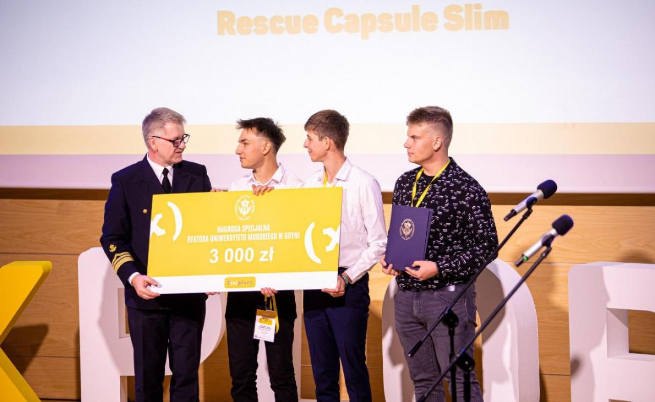 The 23rd Gdynia Explory Week 2023 came to an end with a closing gala. HM The Rector of Gdynia Maritime University awarded a special award to the creators of the "Rescue Capsule Slim."