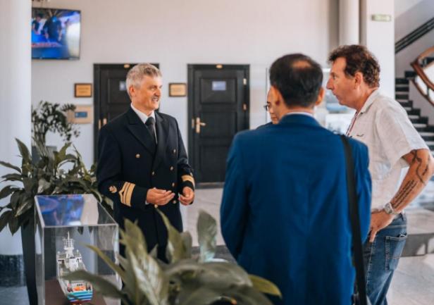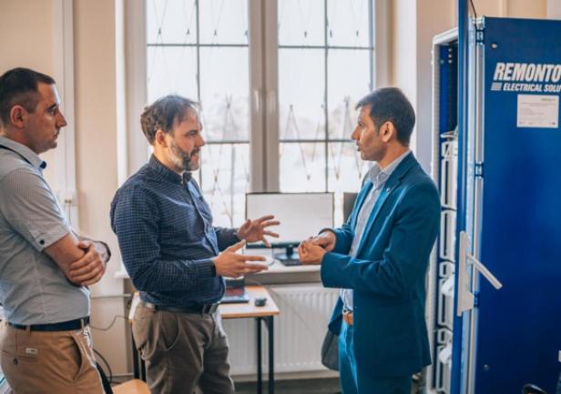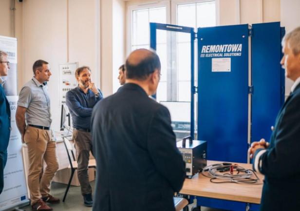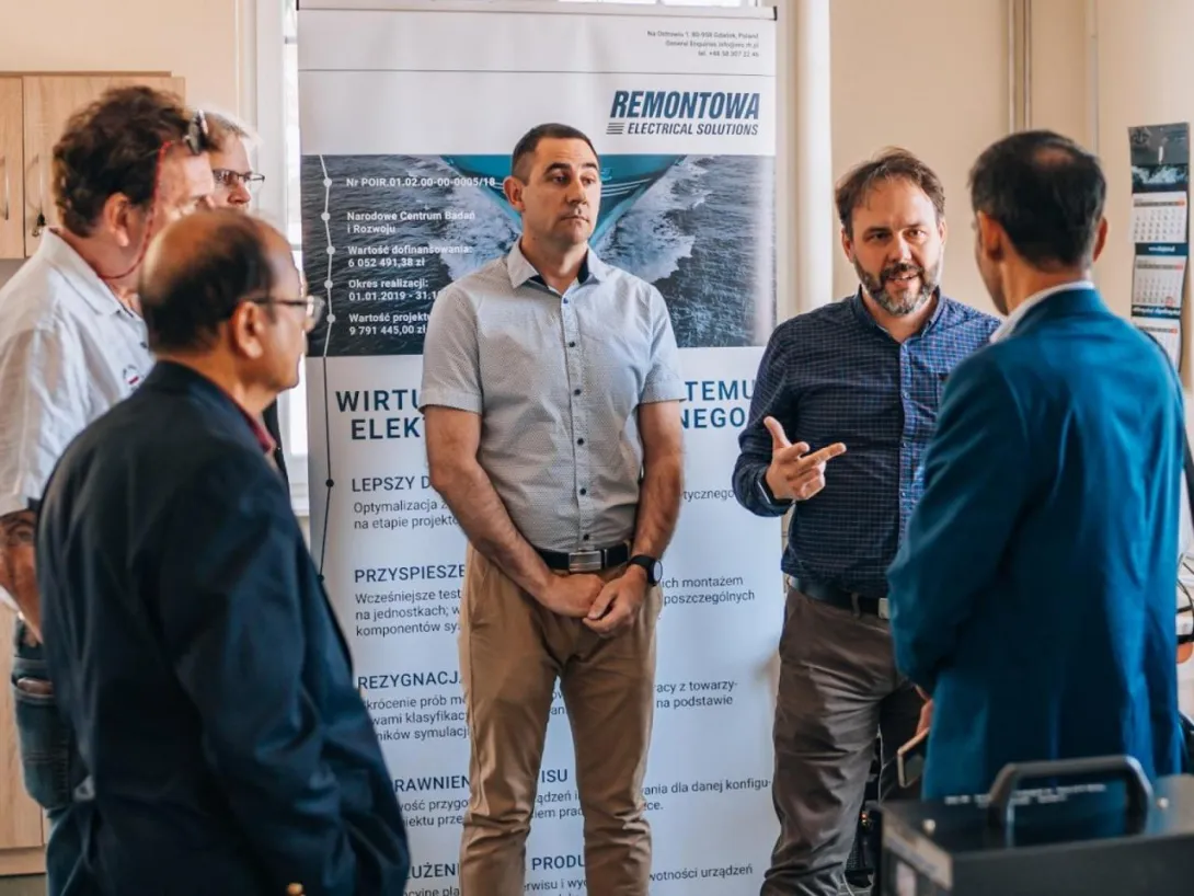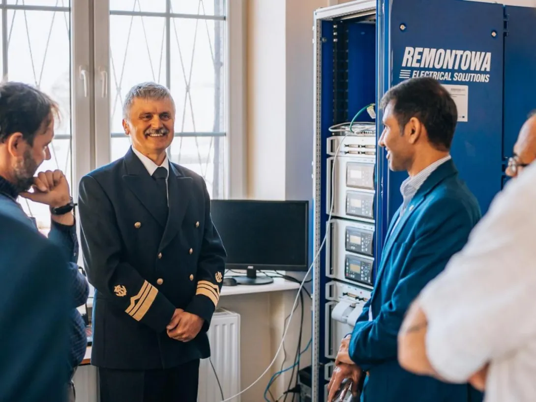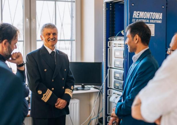 During the meeting, the team presented a laboratory station with a virtual model of a ship's power system built using Hardware in the loop (HIL) technology in the Typhoon Hil environment. The station was developed by GMU staff in cooperation with the Remontowa Electrical Solutions shipyard as part of the project NCBiR no POIR 01.02.00-00-005/1800 entitled "Integrated modelling and graphic design of ship electrical systems". The guests were introduced to the system developed by GMU (in cooperation with Remontowa Electrical Solutions) and given a demonstration of the work of the ship's virtual power system model in collaboration with real Power Management System devices from the company Deif commonly used in ship technology.