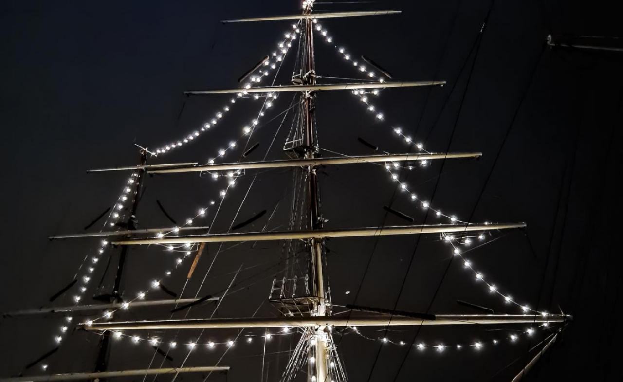 At exactly 4pm on St Nicholas Day, 6th December 2021, the bows of the sailing ship Dar Młodzieży were awash in light as 500 bulbs flickered into life on her masts.