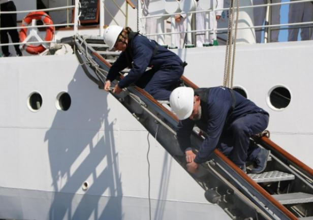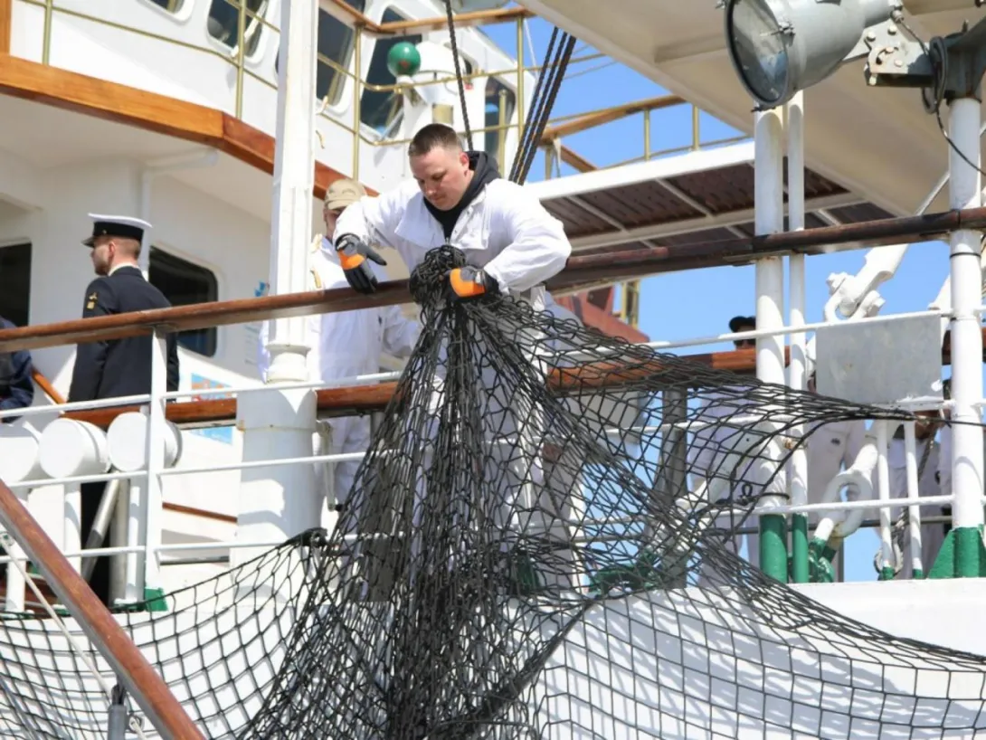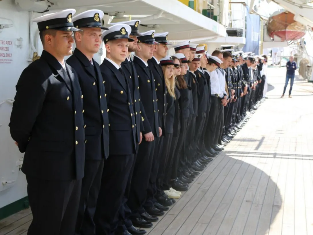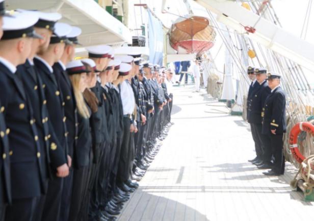 On board the white frigate are students of the GMU Faculty of Marine Engineering, the Western Pomeranian Maritime and Technical Education Centre in Szczecin, as well as National University "Odessa Maritime Academy".