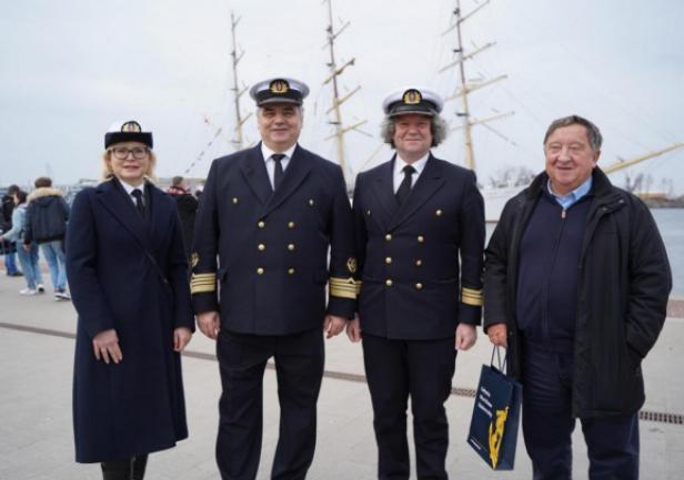 Before taking in the lines and setting sail, the crew met in the officer's mess with HM The Rector of Gdynia Maritime University who after discussing organisational matters wished the captain and crew a successful sailing season.