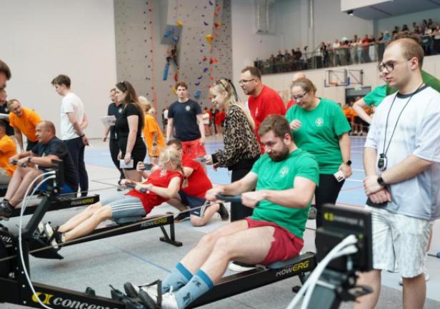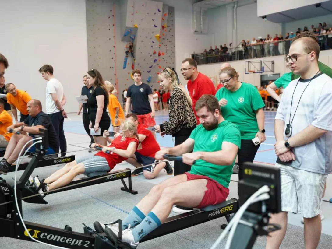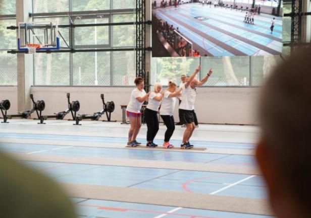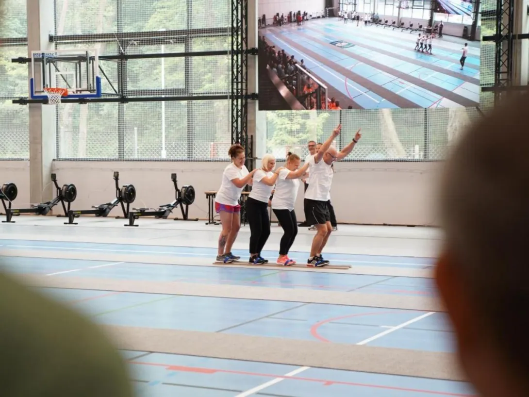 The teams participated in seven events, starting with a crate race, blanket ball, an ergometer rowing race, climbing wall, penalty kicks, and tug of war.