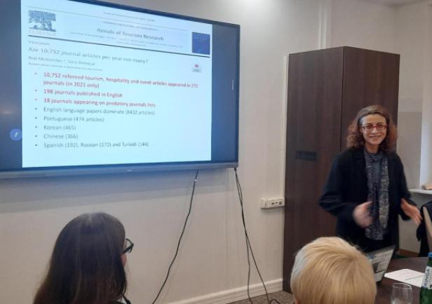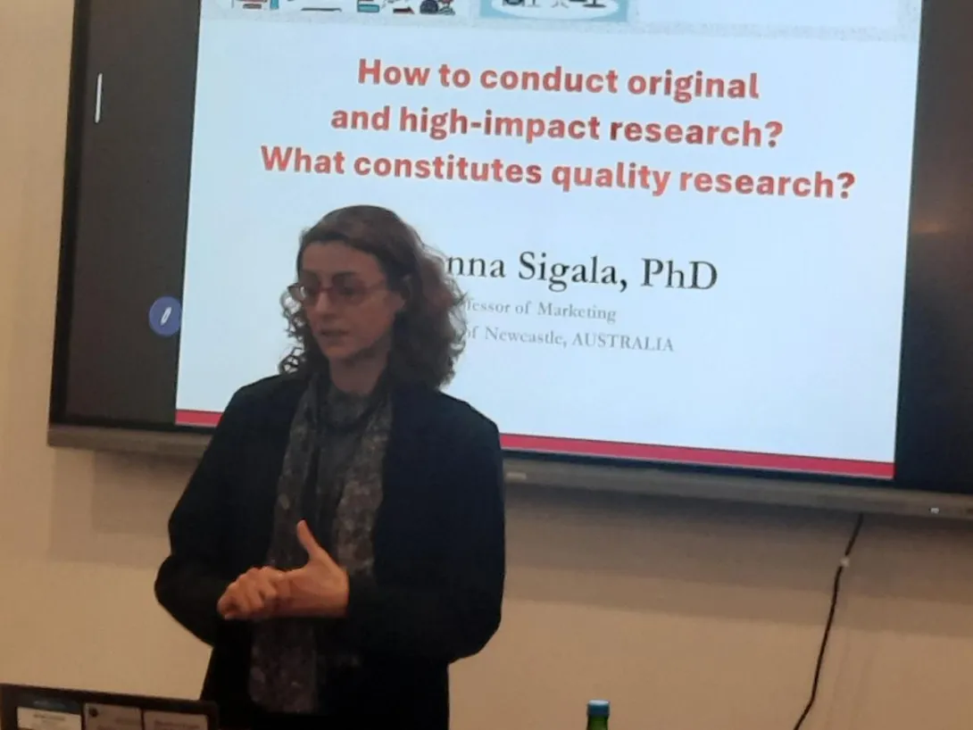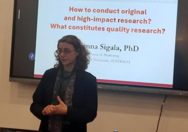 The seminar was led by Professor Marianna Sigala from the University of Newcastle in Australia (https://www.newcastle.edu.au/profile/marianna-sigala), an outstanding expert, highly recognised on the national stage. Professor Sigala is the Editor-in-Chief of the Journal of Hospitality & Tourism Management and co-editor of the Journal of Service Theory & Practice. She is an authority the areas of management and marketing and the tourism industry. Her experience and knowledge proved to be invaluable to the seminar participants. During the meeting, Professor Sigala discussed in detail the publication process, the expectations of the prestigious scientific journals, as well as strategies for improving the impact and quality of scientific publications.