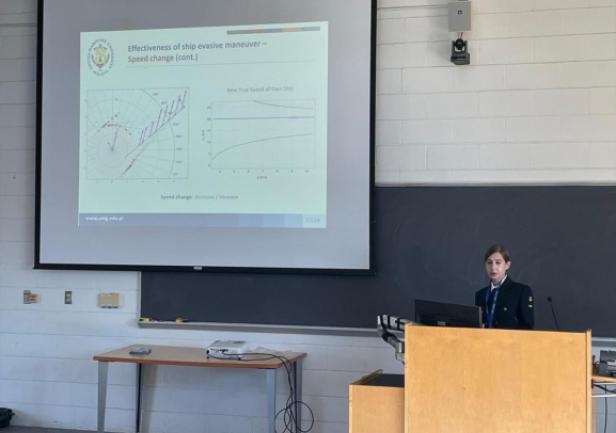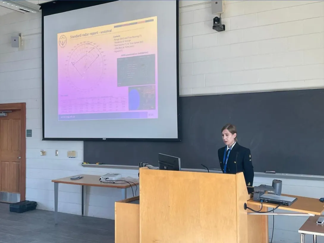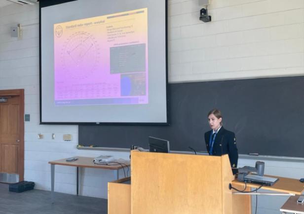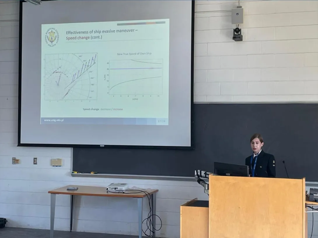 who gave a presentation entitled: Effectiveness of ship evasive manoeuvre enhanced by a comprehensive radar report, prepared with Aleksandrą Żywuszko of the Faculty of Navigation under the guidance of Captain Piotr Kopacz.