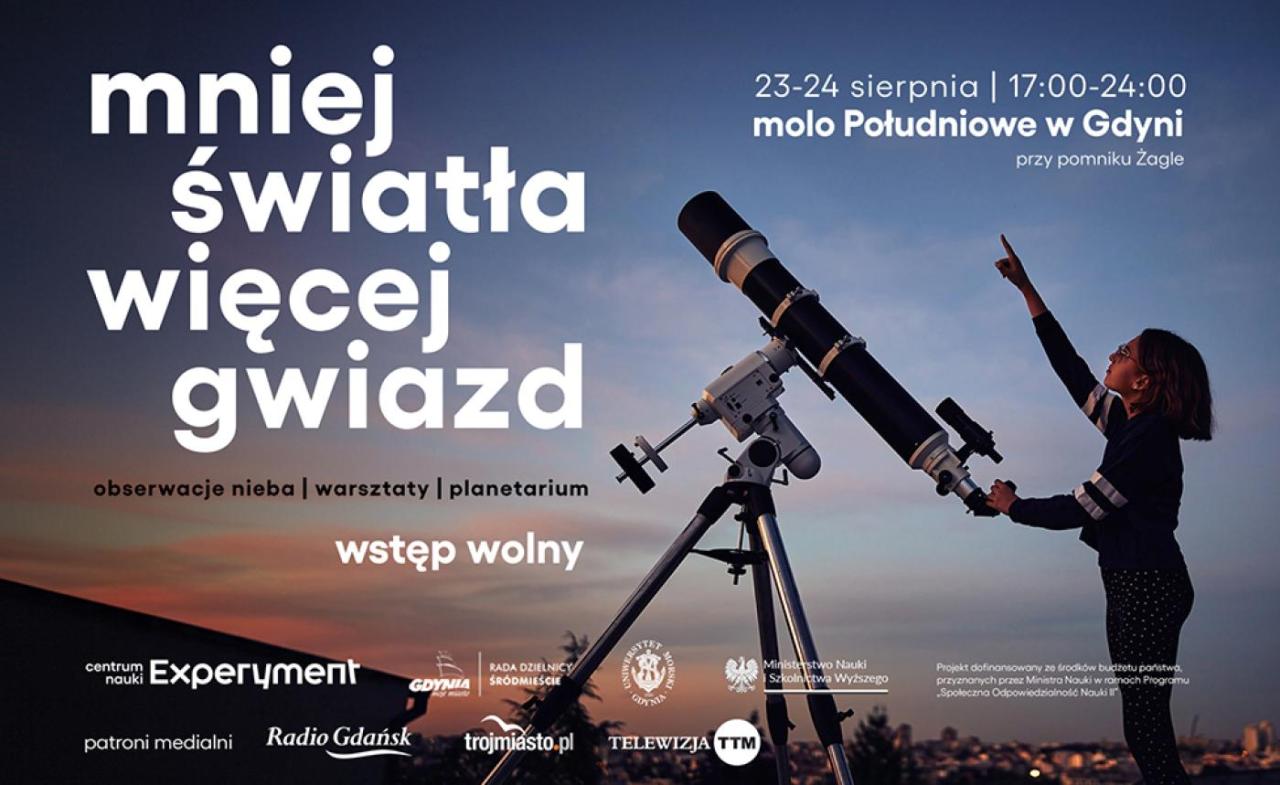 'Less Light, More Stars' is organised by the Experiment Science Centre, Gdynia Maritime University, and the District Council for the City Centre.