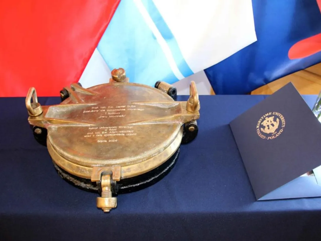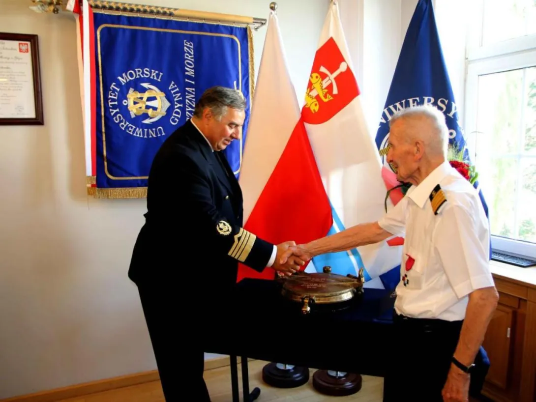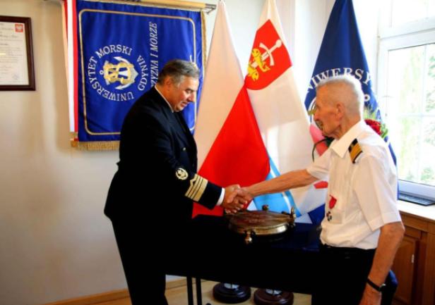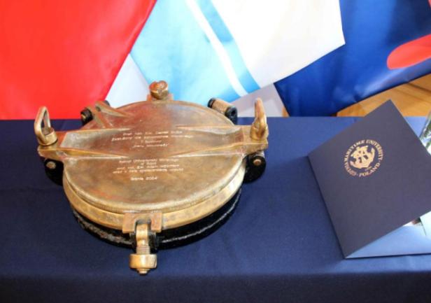 The commemorative porthole was presented to Professor Daniel Duda in recognition of his contribution to the development of the maritime industry and maritime education, including the Higher Maritime School. Professor Duda was instrumental in the project to build the Antoni Garnuszewksi  – a training cargo ship operated by Polish Ocean Lines and the sail training ship Dar Młodzieży. During his time as Rector, a number of development projects were carried out including the construction of a campus accommodating more than 1000 students and young staff, a sports hall, and a planetarium. In addition, under his leadership, the Maritime School introduced part-time and supplementary study programmes for its graduates and gained the right to award master's degrees. In 2021, Professor Daniel Duda was honoured by the University with the honorary title of Doctor honoris causa.