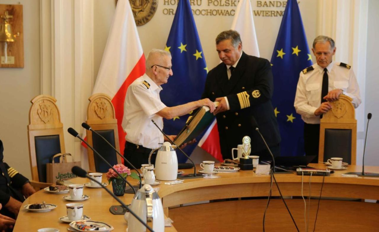 On 20th August, in the Senate Meeting Hall at Gdynia Maritime University, a ceremony was held for the presentation of a commemoratory porthole from the first voyage of Dar Młodzieży to Professor/Captain Daniel Duda. This unique memento was symbolically gifted to Professor Duda, the Rector of the Higher Maritime School during the years 1972-1981, by HM The Rector of GMU, Professor Adam Weintrit on the 50th anniversary of the first Operation Sail [Operacja Żagiel] to be held in Poland.