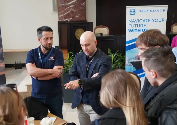 Dear students, we’ve managed to bring together 16 exhibitors — the same as at the first edition of this event, which took place in January this year. During the Fair you have the chance to meet your dream future employer, and before that to find a ship where you can complete your cadet training placement.