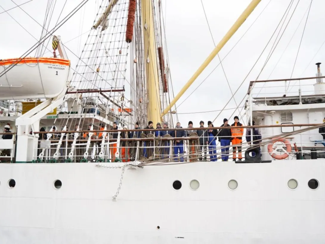 On 14 March, Dar Młodzieży left port on its first voyage of the 2025 sailing.  With a group of 50 pupils on board from the Maritime Schools in Gdańsk who helped prepare the ship, the Dar Młodzieży headed to Antwerp. Taking the place of the students for the next stage of the voyage will be students from the Belgian Maritime Academy. The interns, their two tutors, and the 33 crew members on board were seen off from the port in Gdynia by HM The Rector of GMU, Professor Adam Weintrit, and the Director of the Maritime Operations Department, Captain Dariusz Jellonek.