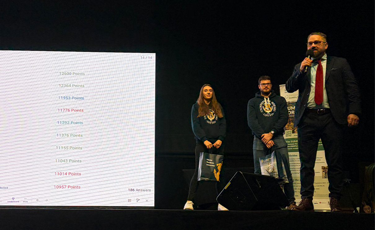 The final was held at the Polsat Plus Arena in Gdynia. It included a quiz on bicycle transport, created by Oskar Gacha, Agnieszka Jankowska and Dr Adam Przybyłowski, staff from the GMU Department of Transport. The quiz ended with a request to assess the impact of the campaign on the perception of bikes by secondary school pupils. Responsible for the technical management of the quiz was Oskar Gacha, whereas Dr Adam Przybyłowski led the quiz on stage. After the winners had been selected, Dr Przybyłowski, together with the students Julia Monkiewicz and Szymon Jabłoński, presented the prizes funded by HM The Rector of GMU, Professor Adam Weintrit.