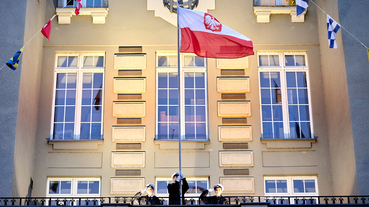 The oldest GMU tradition, the raising of the flag dates back 105 years to when young students, many of them participants in the Polish-Bolshevik war of 1919-1920, raised the flag on the building of the newly inaugurated Maritime School in Tczew, as the school did not yet have its own ship.
