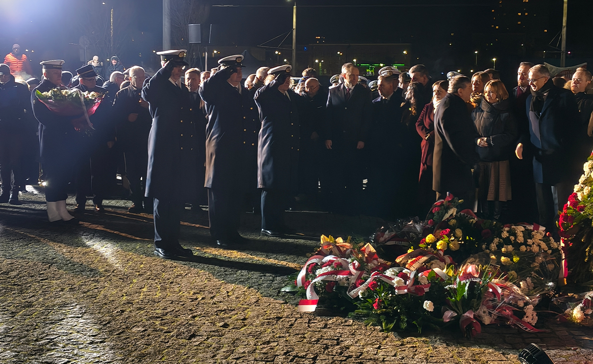 The ceremony included the reading of a Roll Call of Remembrance and the firing of a ceremonial salute. On behalf of the entire academic community of the Maritime University of Gdynia, HM The Rector, Professor Adam Weintrit, laid flowers at the Monument to the Victims of December 1970, paying tribute to those killed and injured in the tragic events of that month.