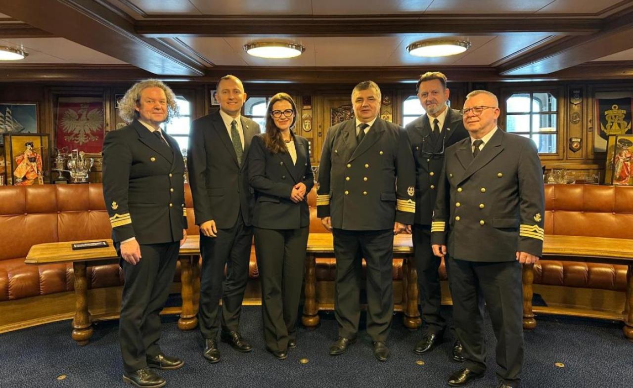 On 16 January 2025, HM The Rector of GMU, Professor Adam Weintrit, welcomed Polish Members of the Polish Parliament Wioleta Tomczak and Piotr Strach on board the University’s tall ship Dar Młodzieży. The topic of the meeting, which was attended by the Director of the Maritime Operations Department, Dariusz Jellonnek and the Captain of the Dar Młodzieży, Rafał Szymański was current issues related to the education of merchant fleet personnel, including student training at sea on board the sail training ship. Also discussed were plans for the development of a successor to the Dar Młodzieży.