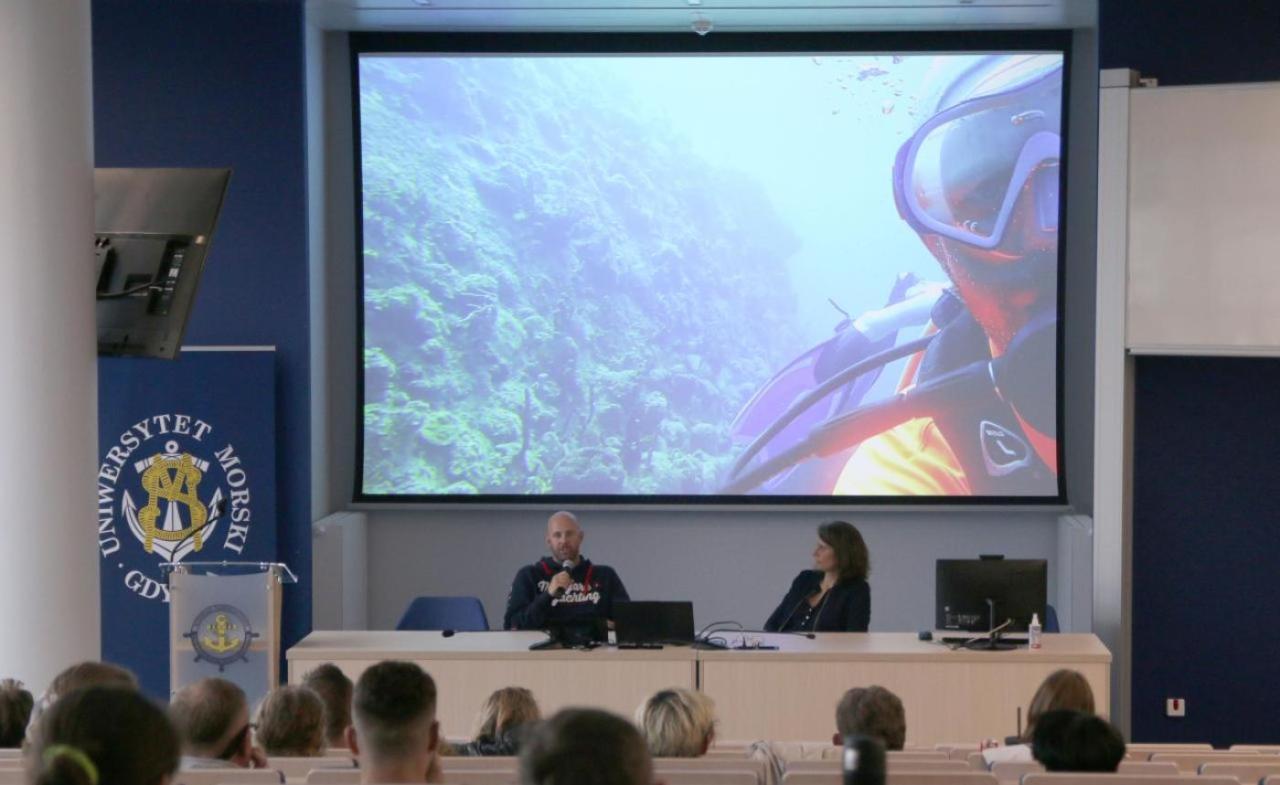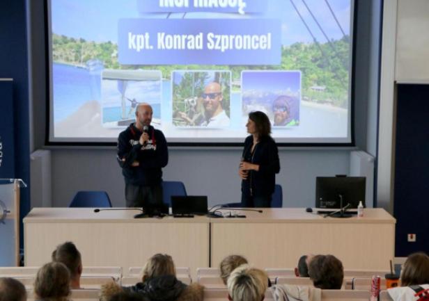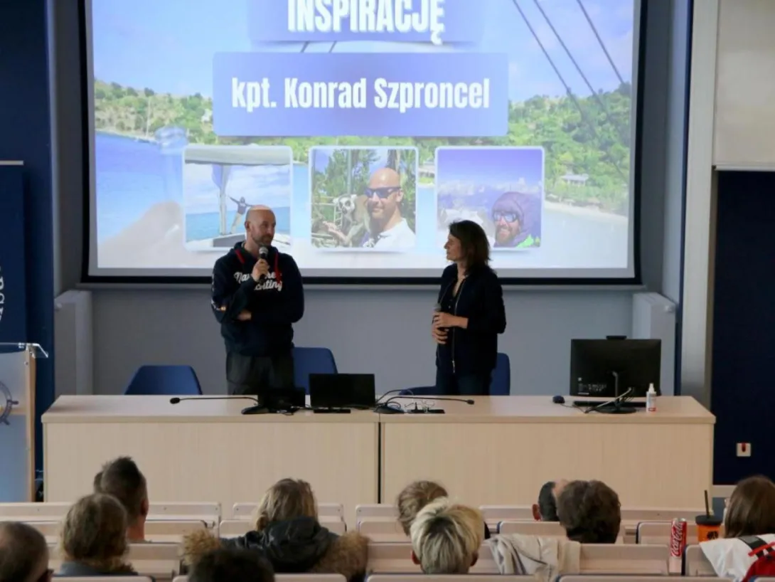 On 8 May 2025 at 18:00, the first in a series of meetings with extraordinary individuals took place in the auditorium at the Faculty of Navigation of GMU. Organised by the Sailing and Waters Sports Centre at Gdynia Maritime University under the name 'A Course Towards Inspiration", the event aims to give GMU students, staff and others the opportunity to hear from persons who, through their attitude, show that life doesn't have to follow conventional patterns, and for whom the overriding goal remains the pursuit of dreams and living life on their own terms.