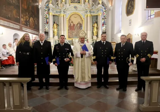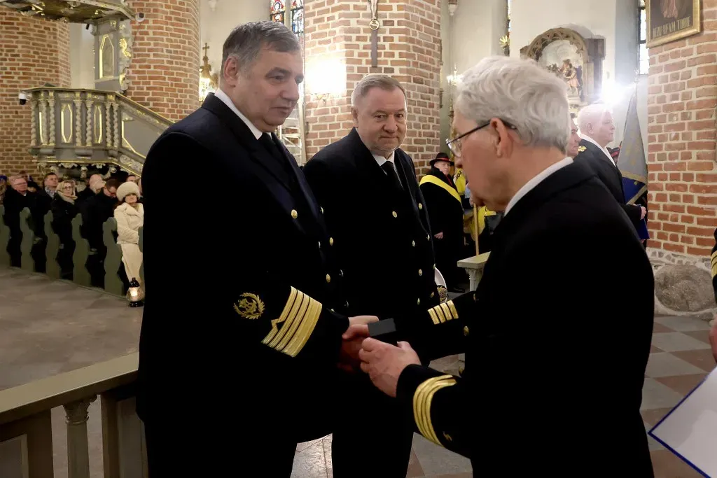 At the conclusion of the liturgy, HM The Rector of GMU, Professor Adam Weintrit, was honoured with the Haller Ring, awarded by the President of the Maritime and River League, Dr Capt Andrzej Królikowski, in recognition of his contribution to Poland’s blue economy and to preserving maritime traditions.