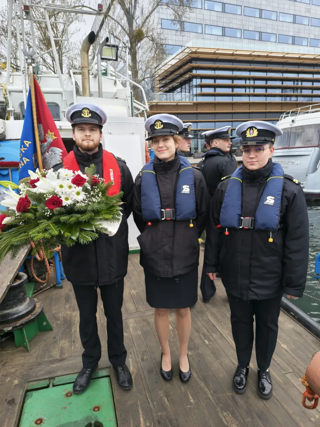 The delegations on board a vessel of the Maritime Office in Gdynia laid flowers on the waters of Gdańsk Bay in tribute to the General’s memory. GMU was represented by members of staff and students, who, on behalf of the entire academic community, cast a bouquet of white and red flowers onto the waters of the bay.