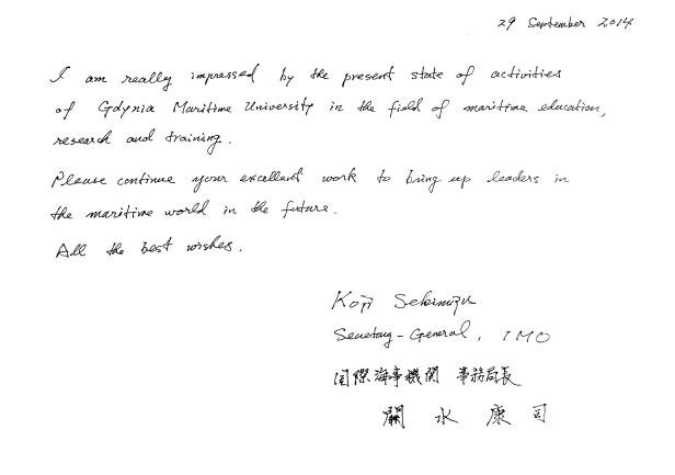GMU experts take actions in the IMO in favour of the Polish government by participating in the work of the Marine Environment Protection Committee (MEPC), the Sub-committee on Navigation, Communications and Search and Rescue (NCSR),  the Sub-committee on Carriage of Cargoes and Containers (CCC),  the Sub-committee on Human Element, Training and Watchkeeping (HTW) and the Sub-Committee on Ship Design and Construction (SDC), as well as in the meetings of the IMO working groups. Experts analyze issues considered at the IMO sessions, prepare the substantial position of the Polish party and the conclusions resulting from the resolutions adopted by the IMO.