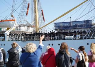 Dar Młodzieży, a triple-masted B-95 frigate and GMU’s sail training ship, continues the tradition of its two famous predecessors, Lwów - the Maritime School’s sailing ship during its early days based in Tczew, and Dar Pomorza, known as the “white frigate”.