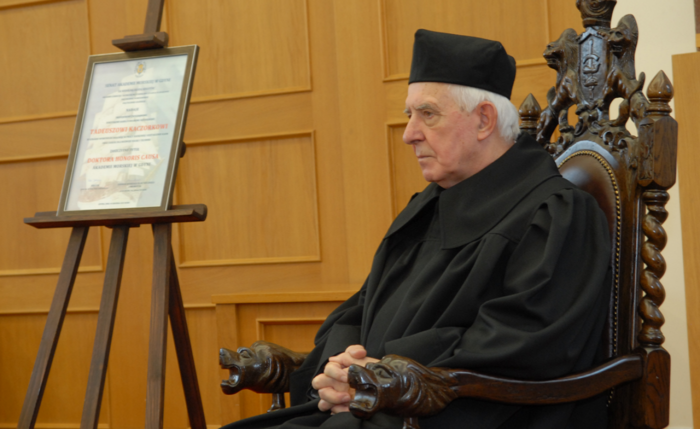 In 2014, Professor Tadeusz Kaczorek was granted the honorary title of Dr honoris causa by Gdynia Maritime University, on the initiative of Janusz Zarębski - Dean of the Faculty of Electrical Engineering, who acted as the promoter. The conferral of the honorary title was supported by the Council of the Faculty of Electrical Engineering (11th December 2014), and the Gdynia Maritime University Senate. Following a review of the Professor’s academic achievements, the granting of the title of Dr honoris causa was also supported by Professor Marian Kaźmierowski (Warsaw University of Technology), Professor Kazimierza Jakubiuka, (Politechnika Gdańska) and Professor Wojciech Mitkowski (AGH University of Science and Technology), the Senates of AGH University of Science and Technology, Gdansk University of Technology, and Warsaw University of Technology. A resolution was passed by the Senate of Gdynia Maritime University on 29 October 2015.