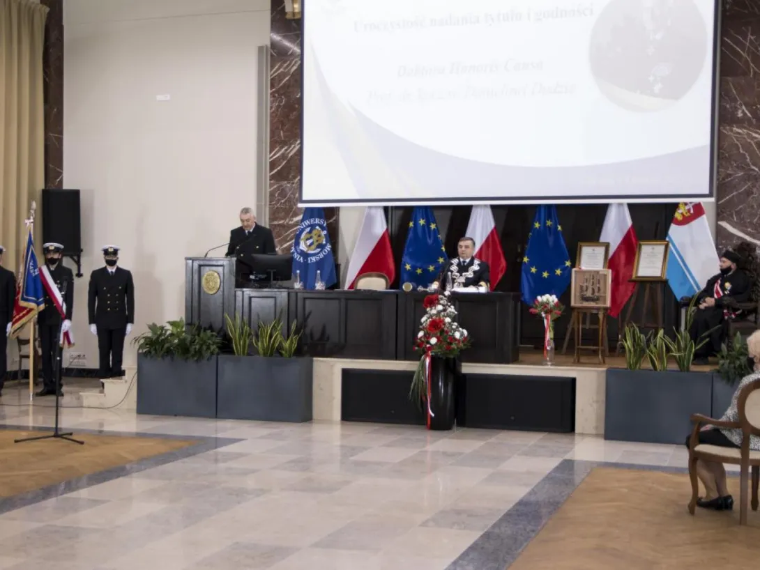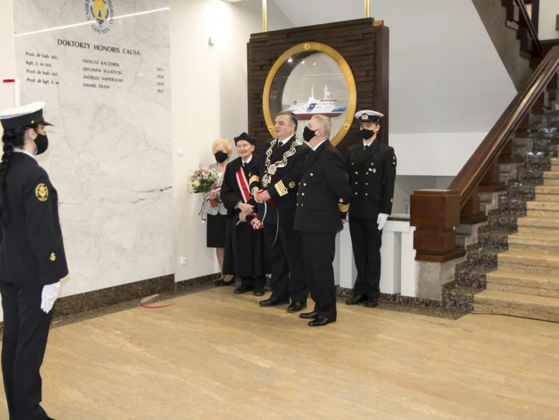 In 2020, for meritorious service to the University, the Senate initiated the procedure for the award of the honorary title of Dcotor honoris causa of Gdynia Maritime University to Professor Daniel Duda. By Resolution no 20/XVII of 28th January 2021, in recognition of his service in the development of the social life of the University, his contribution to the development of the maritime industry and the shaping of a professional ethos among the “people of the sea”, as well as his important input in the development of Gdynia Maritime University and its scientific personnel, the Senate of Gdynia Maritime University awarded Professor Daniel Duda the honorary title of Doctor honoris causa.