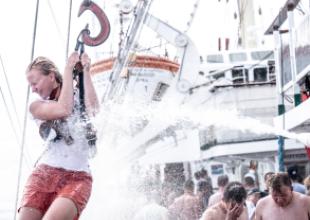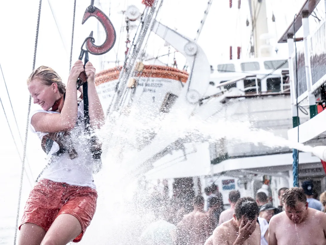 On the way to Cape Town, having crossed the equator for the first time during the passage, the Dar Młodzieży entered the southern hemisphere for several months. There, many of the crew experienced the equatorial baptism - an old maritime ritual by which King Neptune and his companions come on board the vessel and those crossing the equator for the first time are subjected to sophisticated torture. All those who proved themselves seaworthy received certificates as proof of their successful initiation into the court of King Neptune. During the trip, Neptune boarded the white frigate for the second time in October between Borneo and Sumatra, before the ship’s arrival in Singapore and return to the northern hemisphere.