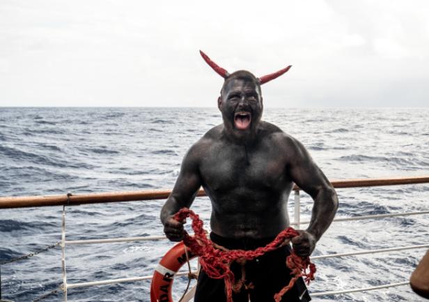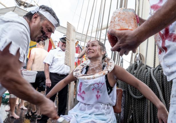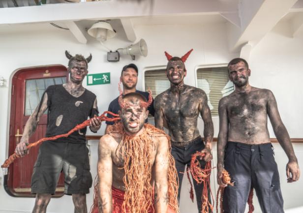 On the way to Cape Town, having crossed the equator for the first time during the passage, the Dar Młodzieży entered the southern hemisphere for several months. There, many of the crew experienced the equatorial baptism - an old maritime ritual by which King Neptune and his companions come on board the vessel and those crossing the equator for the first time are subjected to sophisticated torture. All those who proved themselves seaworthy received certificates as proof of their successful initiation into the court of King Neptune. During the trip, Neptune boarded the white frigate for the second time in October between Borneo and Sumatra, before the ship’s arrival in Singapore and return to the northern hemisphere.