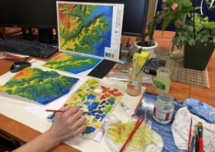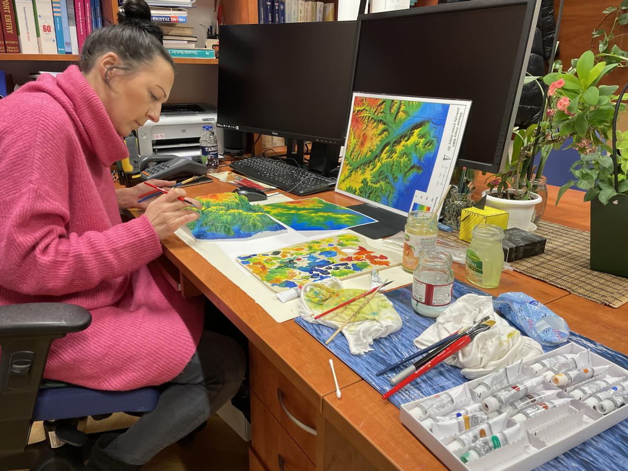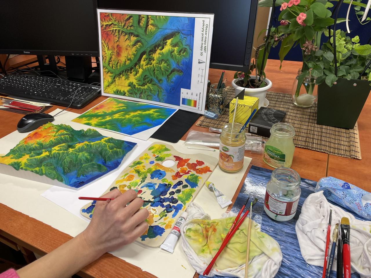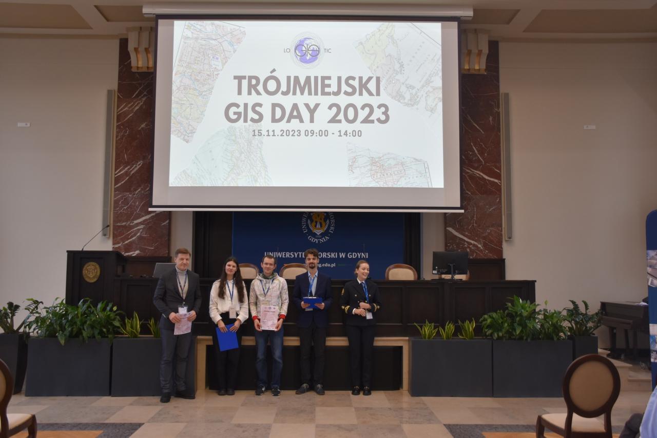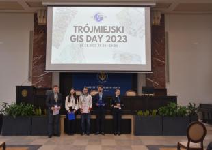 TriCity GIS Day 2023 was held at Gdynia Maritime University on 15 November. The event was organised by the LoGIStic Student Scientific Circle of the Department of Transport at the Faculty of Navigation. "GIS Day" is an international educational event aimed at popularising knowledge and the practical application of geographical information systems (GIS). In addition to attending lectures, guests were also presented with posters on the GMU Permanent Orienteering Courses, including maps of the area in a variety of visualizations and 3D models. A presentation on the project was put together by Piotr Kopacz and Marcin Sontowski, and a 3D printout of the map of the "Chylonia" area was hand-painted by Asia Rogowska.