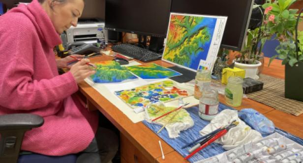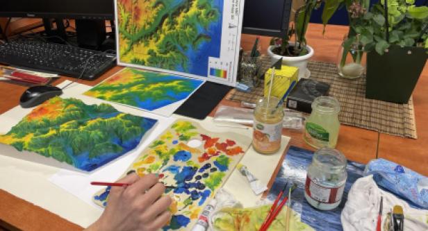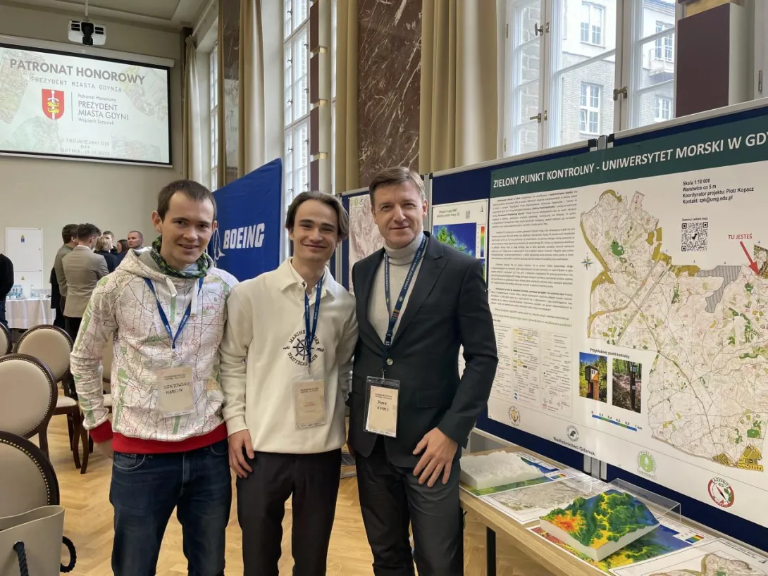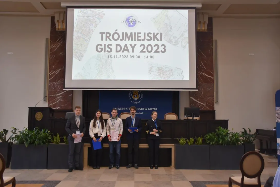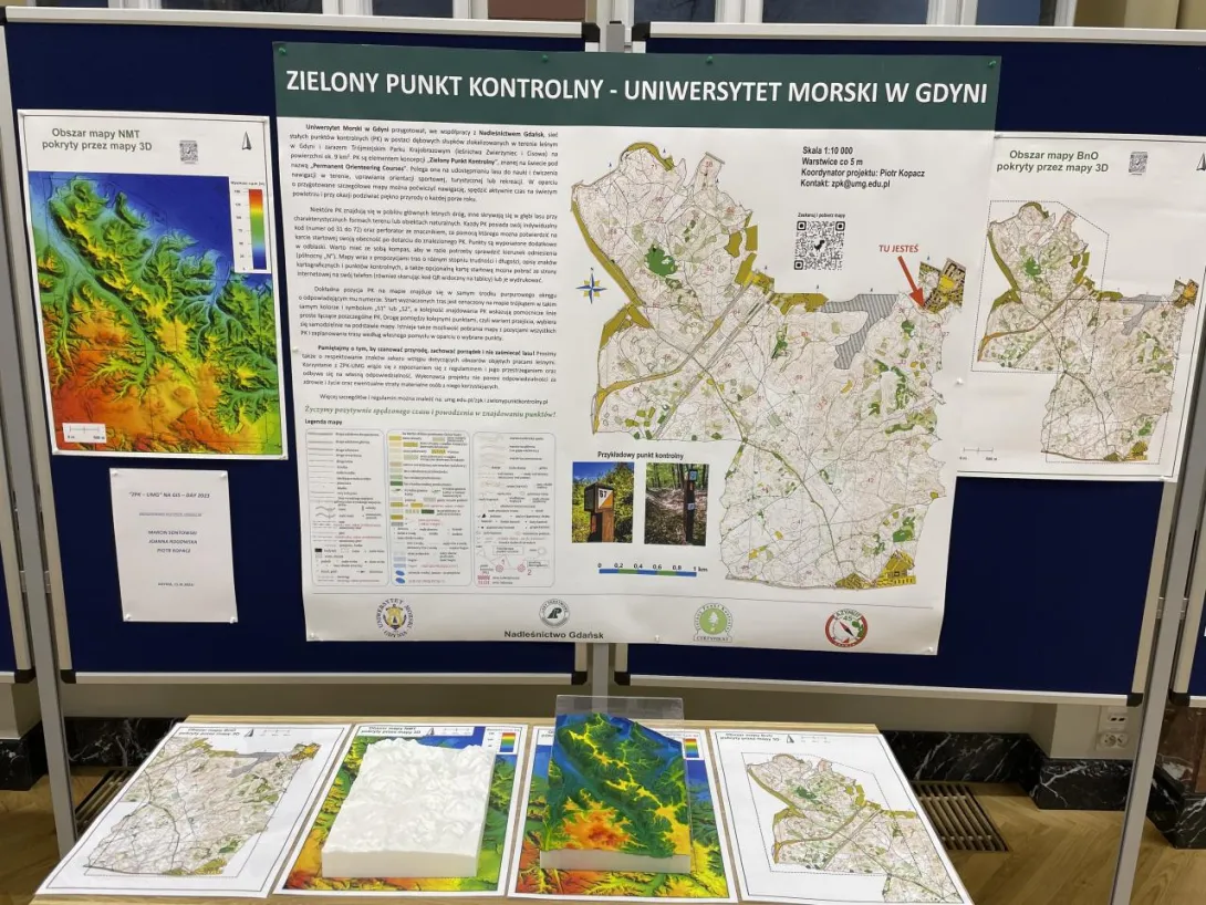 TriCity GIS Day 2023 was held at Gdynia Maritime University on 15 November. The event was organised by the LoGIStic Student Scientific Circle of the Department of Transport at the Faculty of Navigation. "GIS Day" is an international educational event aimed at popularising knowledge and the practical application of geographical information systems (GIS). In addition to attending lectures, guests were also presented with posters on the GMU Permanent Orienteering Courses, including maps of the area in a variety of visualizations and 3D models. A presentation on the project was put together by Piotr Kopacz and Marcin Sontowski, and a 3D printout of the map of the "Chylonia" area was hand-painted by Asia Rogowska.