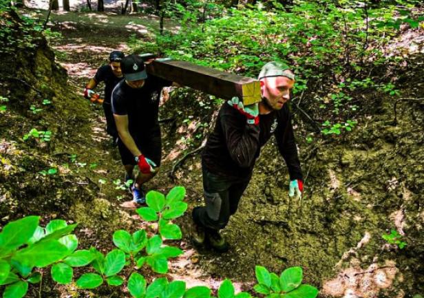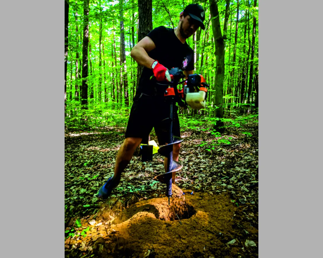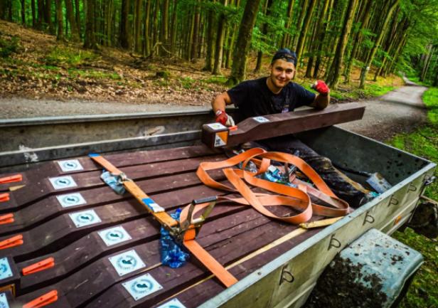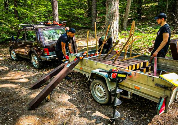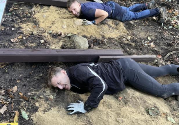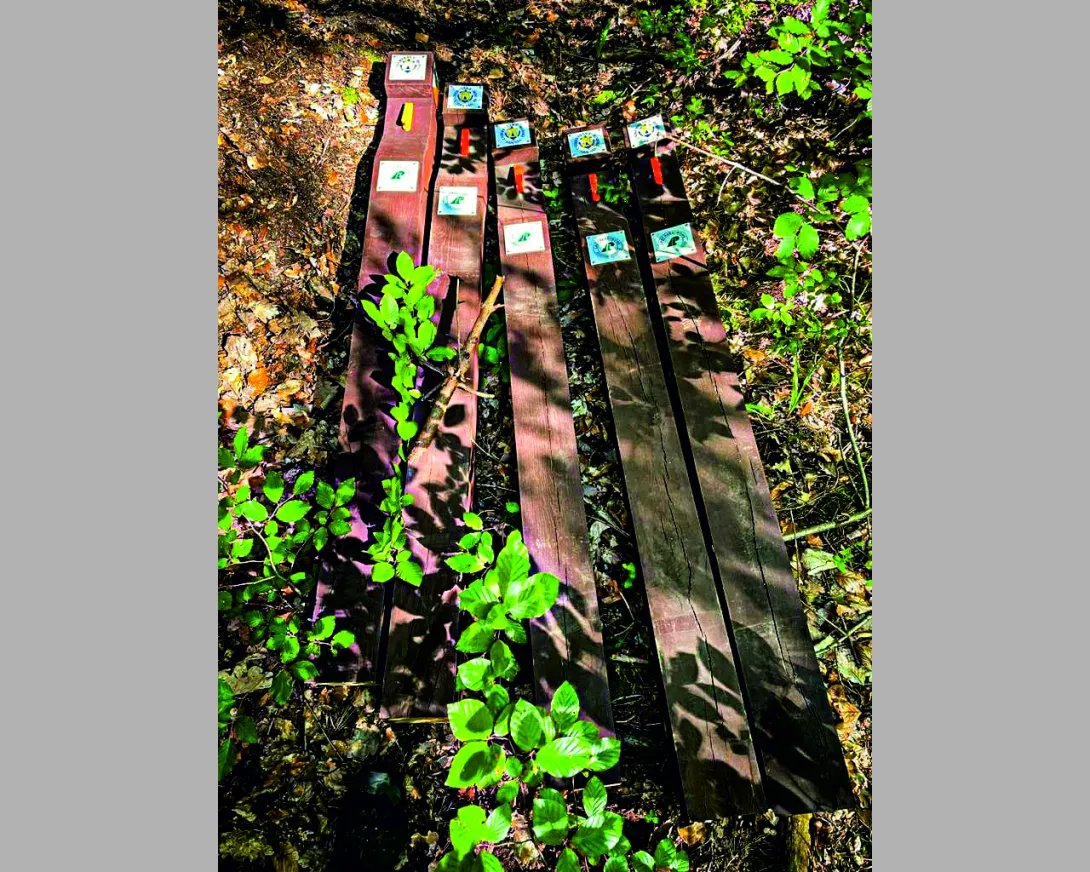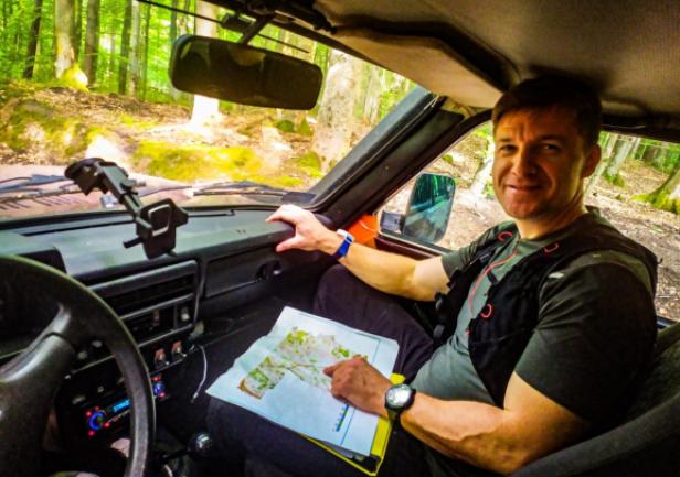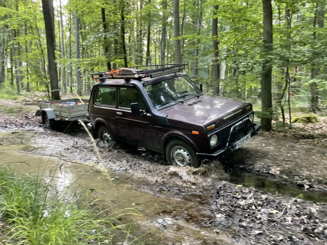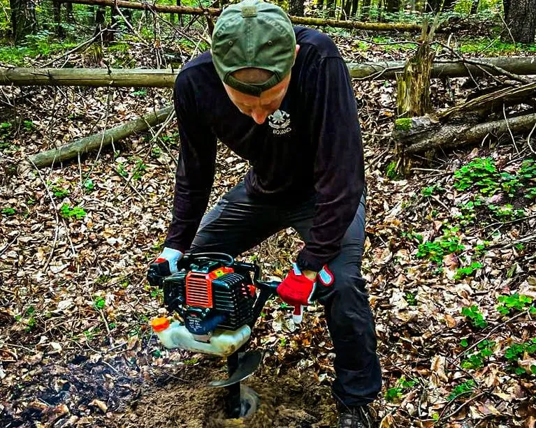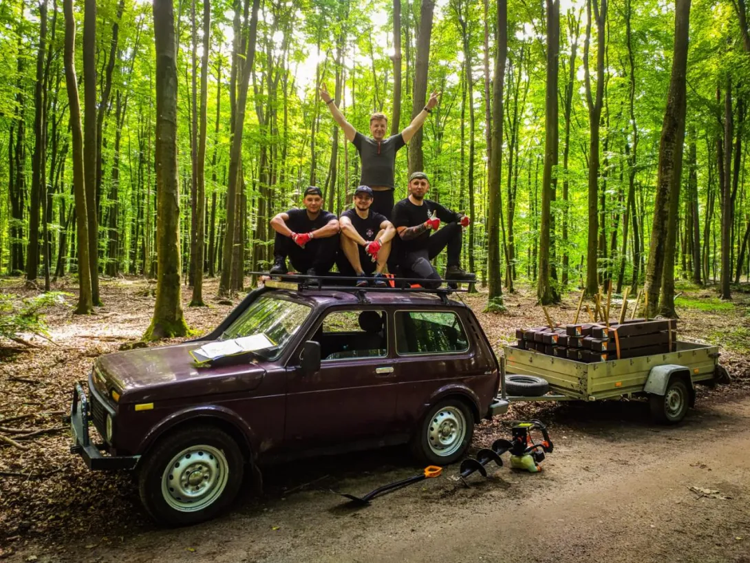 (...) Wszystkie 42 punkty kontrolne (PK) w formie dębowych słupków udało się nam "zasadzić" w terenie w jeden dzień. Była to upalna sobota 15.VII.2023r. Pierwszym zainstalowanym punktem kontrolnym był PK 45 w południowej i najbardziej płaskiej części obszaru ZPK-UMG. Mimo iż nie obyło się bez małych przygód na błotnistych leśnych drogach (m.in. konieczne były rozprzęgania przyczepy i wyciągania samochodu, który ugrzązł w paru miejscach) i intensywnej pracy, świetna atmosfera towarzyszyła nam przez cały dzień. "Grupa robocza" składała się z czterech osób: druhów Antka Dopke, Szymona Helanda, na czele z Kamilem Dopke z Ochotniczej Straży Pożarnej w Bojanie, którym należą się szczególne podziękowania za pomoc w montażu infrastruktury, oraz Piotra Kopacza z Wydziału Nawigacyjnego UMG - pomysłodawcę i koordynatora całego projektu. Warto wspomnieć, iż Kamil jest absolwentem Wydziału Mechanicznego UMG sprzed kilku lat.