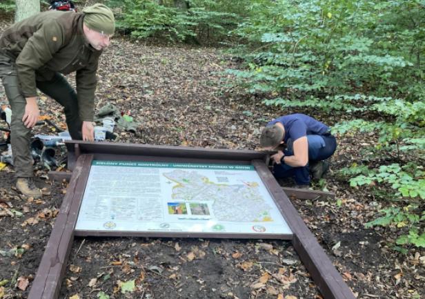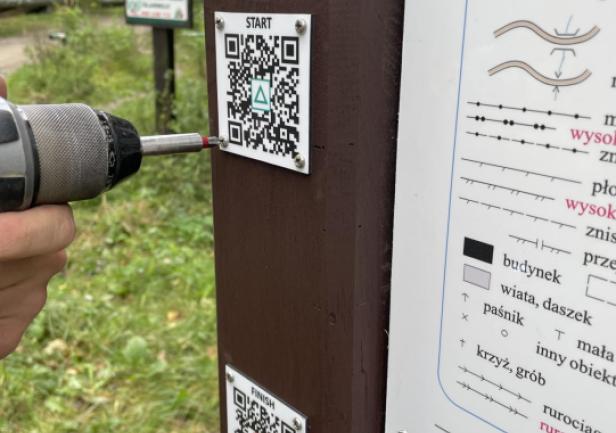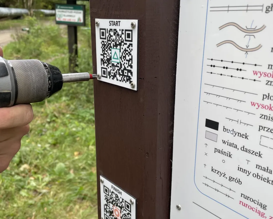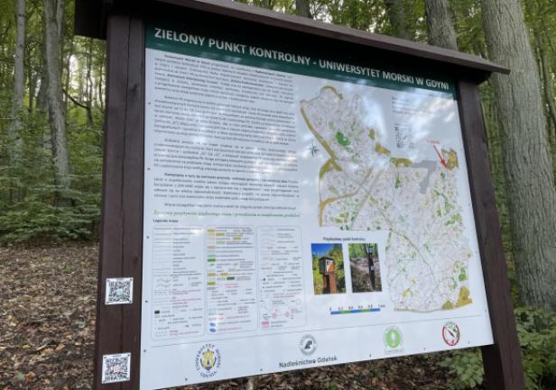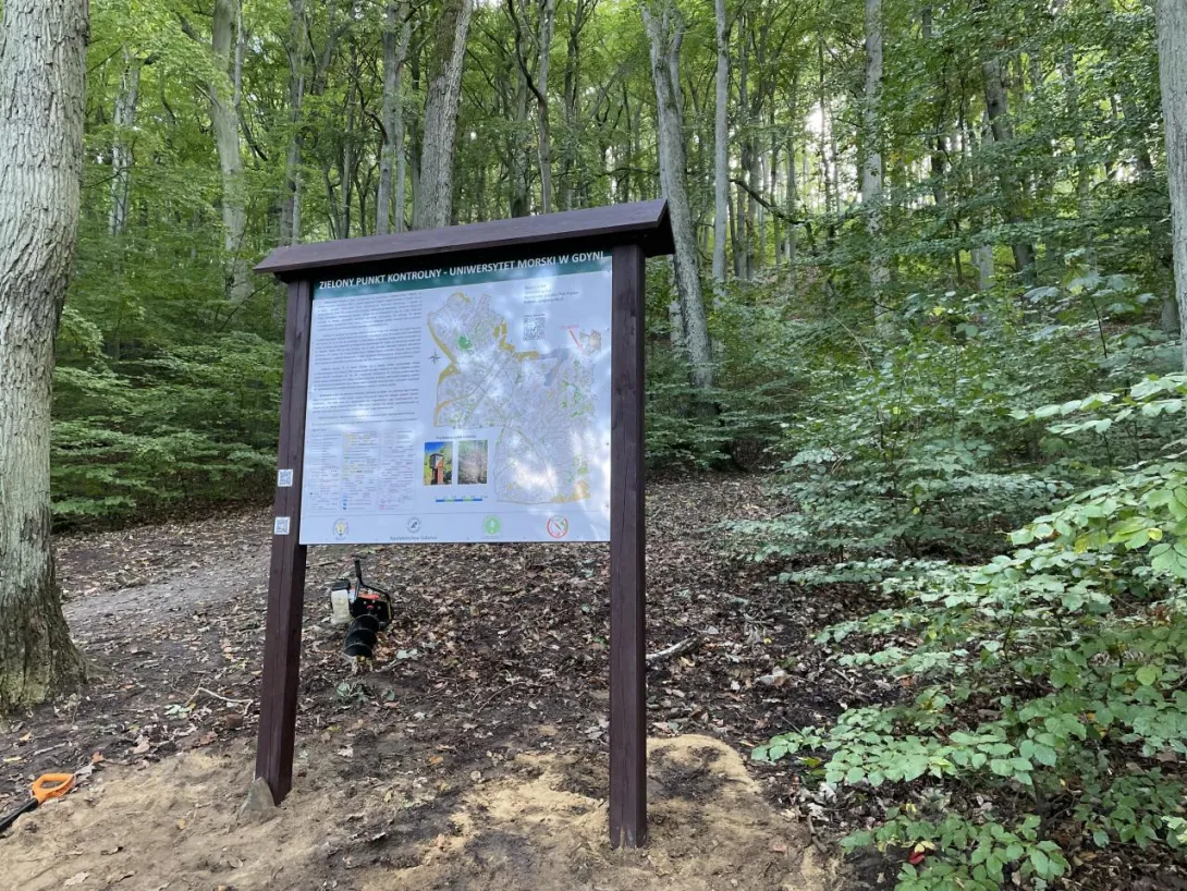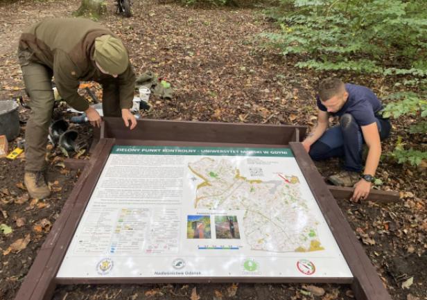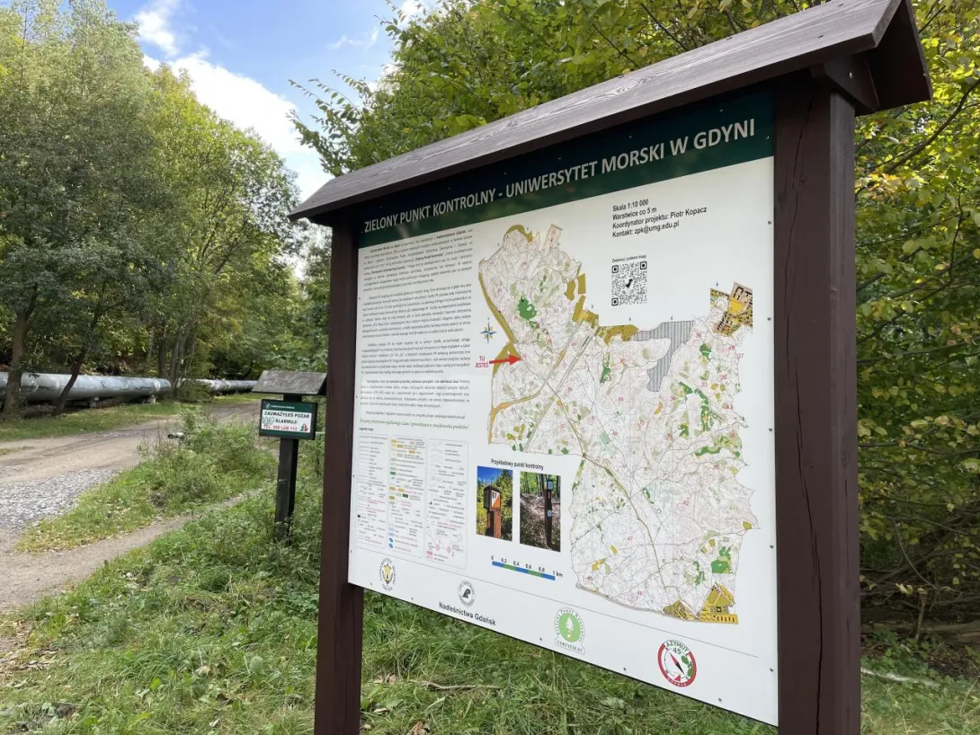 Tablice informacyjne zostały zamontowane w dniu 12.X.2023r. w miejscach wyznaczonych startów, tj. "S1" (dla mapy "Grabówek") i "S2" (dla mapy "Chylonia"). Praca ta została wykonana przez Kamila Dopke i Piotra Kopacza, przy wsparciu Piotra Pielenia - leśniczego z leśnictwa Zwierzyniec w Gdyni. W dniu 17.V.2024r. została także postawiona trzecia tablica wraz z dodatkowym PK 73, zlokalizowana na terenie kampusu UMG. Znajduje się ona tuż przy nowej nowej hali sportowej w Centrum Sportu i Rekreacji UMG. Warto także dodać, iż na tablicach informacyjnych, jak i każdym PK w terenie znajduje się kod QR (w prawym dolnym rogu biało-czerwonej tabliczki), co pozwala na alternatywne "zaliczanie" punktów poprzez skanowanie smartfonem i aplikację iOrienteering (instrukcja "krok po kroku" TUTAJ). Drugi, mniejszy kod QR (w prawym górnym rogu biało-czerwonej tabliczki PK) odsyła z kolei do niniejszej strony internetowej ZPK-UMG.