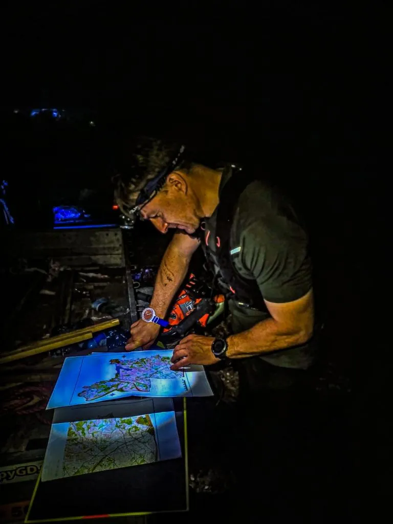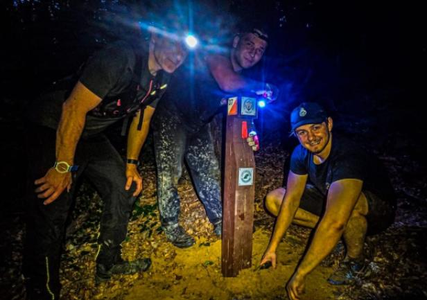 Ostatnie punkty montowaliśmy już po zmroku, idąc z całym sprzętem i parami słupków spory dystans na piechotę. Na samym końcu został zainstalowany PK 39 (o godz. 22:45) zlokalizowany na górze, nieco na południe od funkcjonującej jednostki wojskowej na Grabówku. Jeszcze rano wydawało się, że czas niezbędny na montaż wszystkich punktów to przynajmniej 2-3 dni i to przy sprawnie zorganizowanej pracy zespołu. W celu jej usprawnienia bardzo pomocny okazał się szczegółowy rekonesans dróg, planowanych pozycji i terenu wokół każdego PK, przeprowadzony wcześniej przez Piotra Kopacza, a także przyjęta kolejność montażu poszczególnych PK. Na przyczepę załadowaliśmy także trochę śmieci napotkanych w kilku miejscach. Z lasu wyjechaliśmy o 23:20 zmęczeni, ale jednocześnie z uczuciem sporej satysfakcji z efektywnie wykonanej pracy oraz faktu, iż projekt stworzy dodatkową możliwość pozytywnego spędzenia czasu, nie mając przy tym charakteru komercyjnego. Z założenia ma on być ogólnie dostępny, w szczególności dla studentów UMG oraz mieszkańców Gdyni, Trójmiasta i Pomorza.
