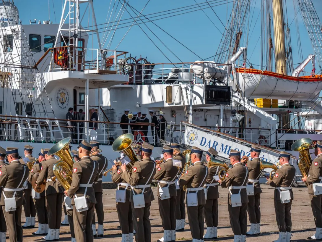 W sobotę, 26 maja, odchodziliśmy od nabrzeża przy akompaniamencie Orkiestry Reprezentacyjnej Wojska Polskiego i rozpoczęliśmy podróż po ... równym jak stół, nie zmąconym najmniejszym powiewem wiatru Bałtyku! Po południu na szczęście pojawiły się pierwsze oznaki nadchodzącego wiatru, dzięki czemu mogliśmy nareszcie postawić żagle. Alarm do żagli został przeprowadzony ochoczo. Mogliśmy przekonać się, że godziny ćwiczeń nie poszły na marne. "Dar Młodzieży" nareszcie ruszył na skrzydłach wiatru. W stronę Kopenhagi...
