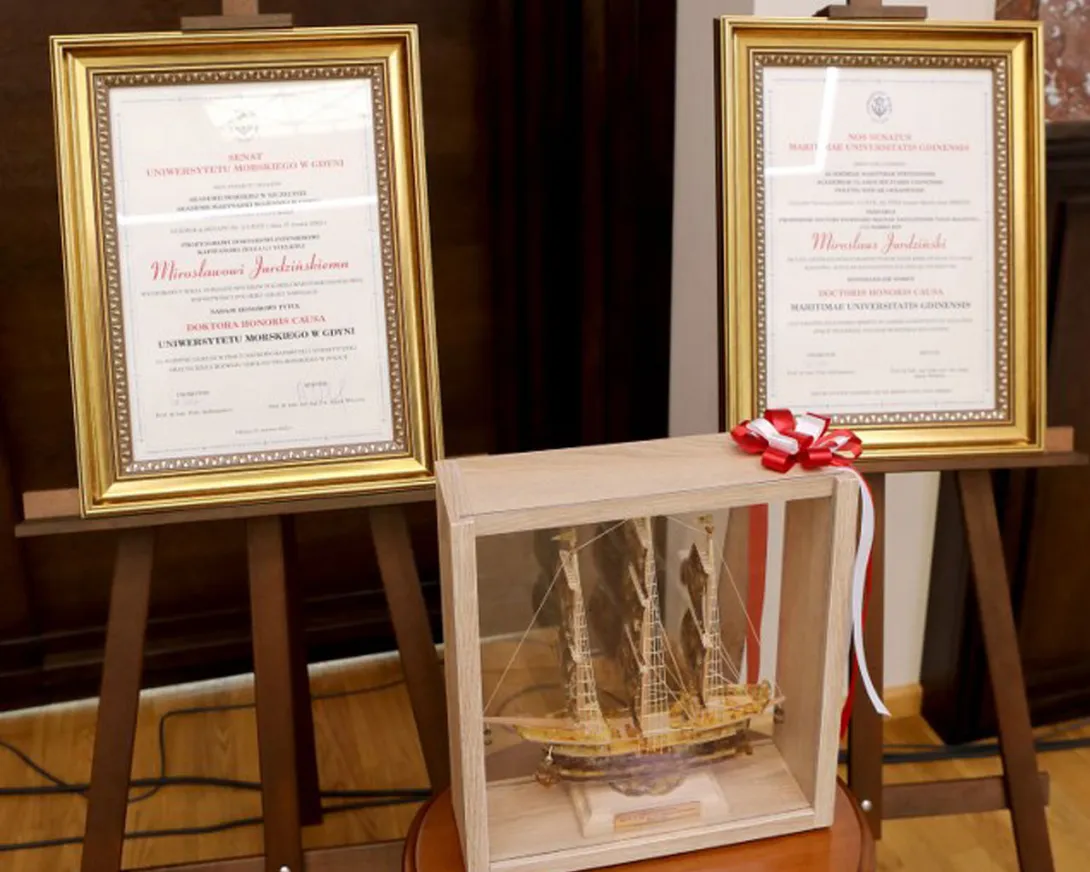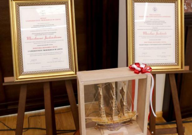 - Tytuł doctora honoris causa stanowi najwyższą godność akademicką nadawaną osobom wybitnym, szczególnie zasłużonym dla rozwoju nauki, kultury, gospodarki, szkolnictwa morskiego lub życia społecznego. To szczególne wyróżnienie otrzymują ludzie cieszący się niekwestionowanym autorytetem i postawą moralną. Osoby uhonorowane tytułem doctora honoris causa mają wolę i siłę sprawczą zmieniania otaczającego ich świata, sprawiania, że ów świat staje się lepszy, bogatszy, ciekawszy i bardziej wartościowy. Do grona tych osób z całą pewnością należy Pan Profesor dr inż. kpt. ż.w. Mirosław Jurdziński.