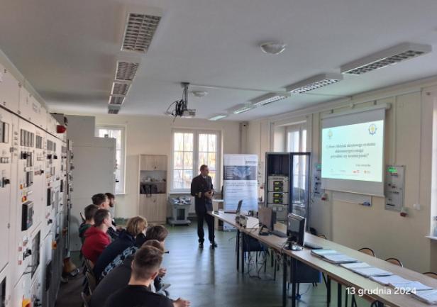 Podczas wykładu omówiono, czym jest wysokie napięcie, jakie jest jego zastosowania w elektroenergetyce lądowej i morskiej oraz zagrożenia występujące przy jego wykorzystywaniu.