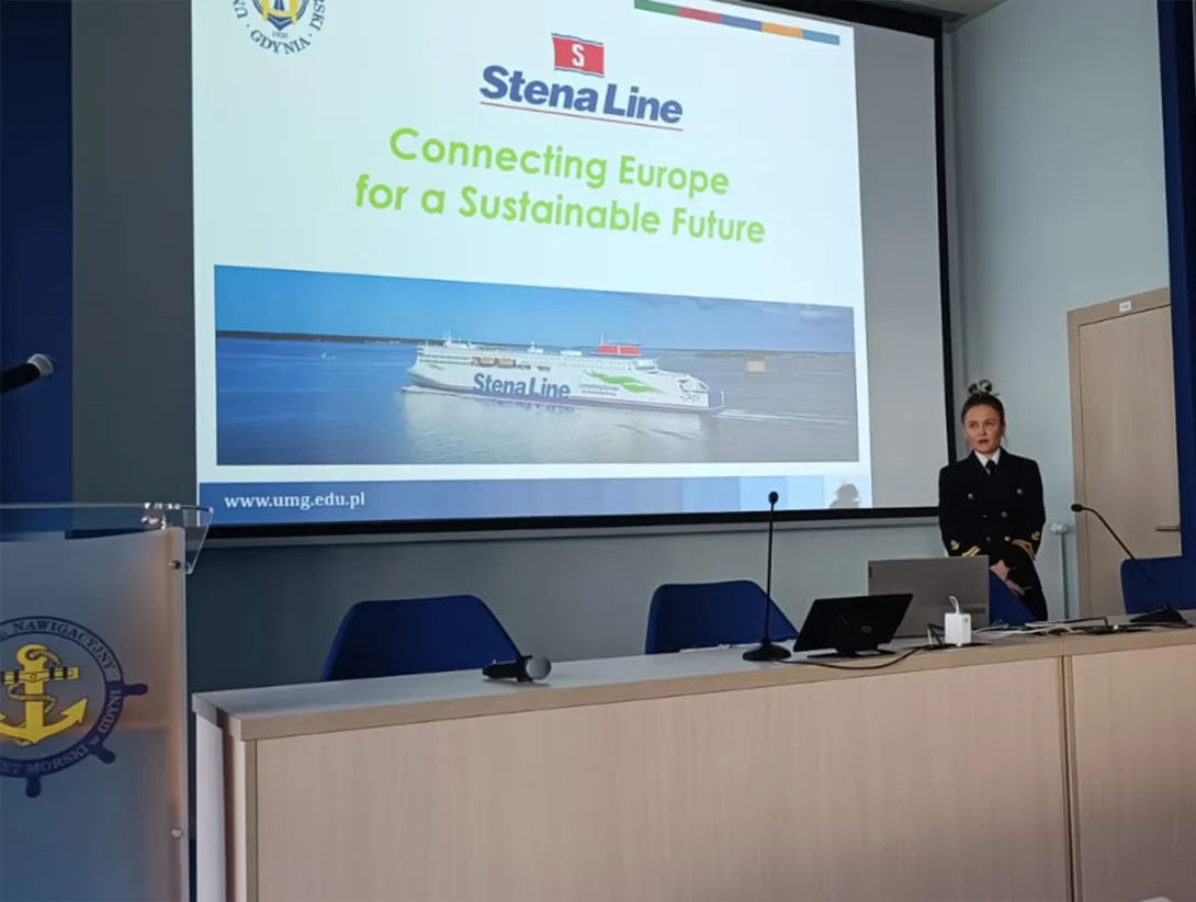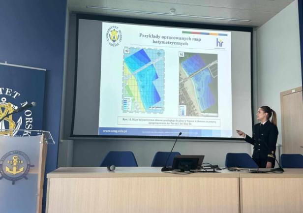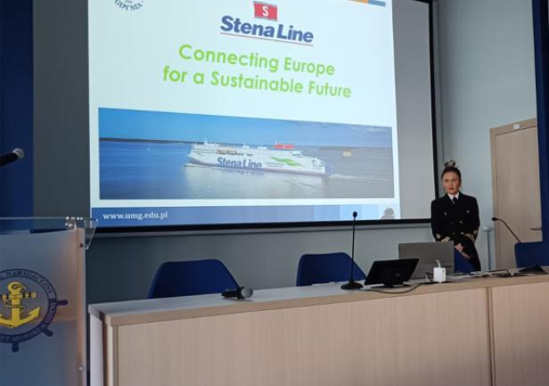 Prelegentka omówiła, jak innowacyjne technologie, alternatywne źródła energii i nowe regulacje wpływają na rozwój zrównoważonej żeglugi oraz najnowsze trendy, wyzwania oraz perspektywy ekologicznego transportu morskiego.