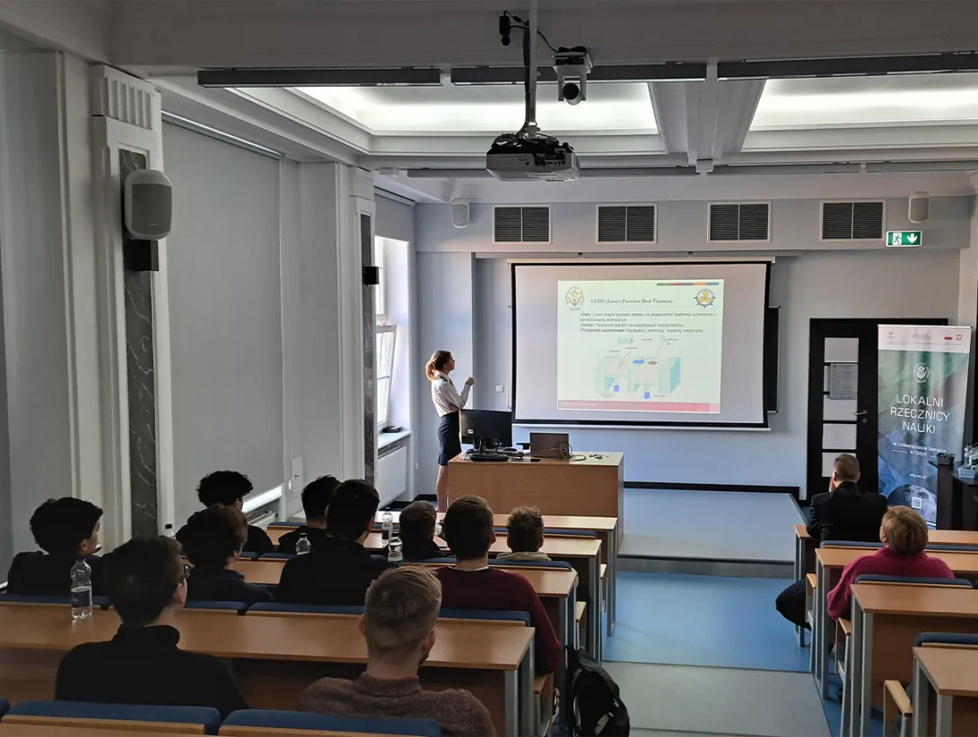 W czasie wykładu omówiono zastosowania druku 3D w przemyśle i nowoczesnych technologiach, jak zaawansowane technologie druku 3D rewolucjonizują produkcję w branżach takich jak motoryzacja, lotnictwo czy medycyna. Omówiono także nowatorskie metody tworzenia wytrzymałych, precyzyjnych komponentów oraz ich wpływ na efektywność i innowacyjność przemysłu.