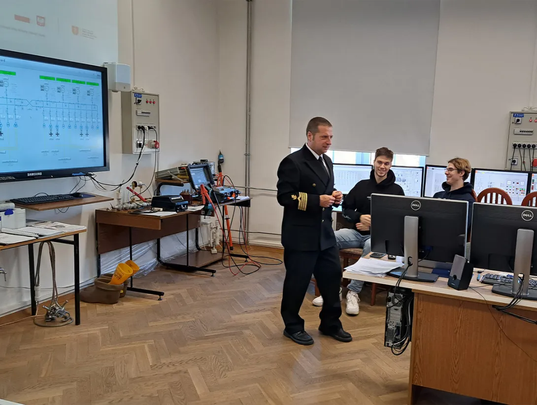 Cyfrowy bliźniak okrętowego systemu elektroenergetycznego jest cyfrowym odzwierciedleniem rzeczywistego obiektu. Zapewnia dokładnie taką samą możliwość badania i testowania statku jak obiekt rzeczywisty, ale bez konieczności wykonywania testu w prawdziwym świecie. Możliwości zastosowania są prawie nieograniczone. Podczas pokazu omówiono zastosowania cyfrowych bliźniaków, jak również zaprezentowany został cyfrowy model okrętowego systemu elektroenergetycznego opracowany w technologii HiL, pozwalającej na połączenie cyfrowego modelu z rzeczywistymi urządzeniami, takimi jak np. regulatory napięcia, regulatory prędkości obrotowej bez konieczności tworzenia ich cyfrowych odpowiedników.