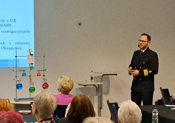 W dniu 10 stycznia 2025 roku odbył się wykład dr. inż. Mateusza Gila, adiunkta w Katedrze Nawigacji Wydziału Nawigacyjnego, który opowiedział o transformacji żeglugi i nawigacji morskiej na przestrzeni dekad. Prelegent zaprezentował zmiany od tradycyjnych metod do systemów autonomicznych, gdzie komputery podejmują większość decyzji na podstawie zaawansowanej analizy danych realizowanej w czasie rzeczywistym. Dr inż. Mateusz Gil poruszył kwestię wyzwań, jakie stawia nowoczesnej żegludze nadchodząca rewolucja przemysłowa prowadząca do Żeglugi 4.0 wymagającej koncentracji na cyberbezpieczeństwie, intensywnych inwestycji w infrastrukturę oraz zmiany kwalifikacji załóg, które będą musiały efektywnie współpracować z nowymi technologiami takimi jak sztuczna inteligencja, Internet rzeczy (IoT), statki autonomiczne, wykorzystanie dużych zbiorów danych (ang. big data), a także zaawansowanych systemów nawigacyjnych.