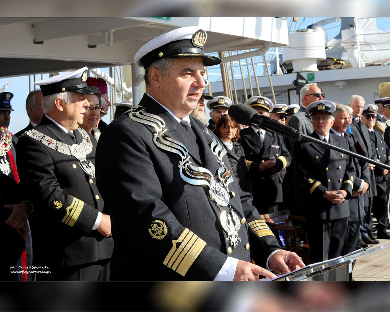W tym miejscu JM Rektor nawiązał do zakończonego wielkim sukcesem Rejsu Niepodległości dookoła Świata. Wspomniał także, iż żaglowce towarzyszyły procesowi kształcenia w Uczelni od samego początku jej istnienia. Przypomniał, iż we wrześniu 2021 roku obchodziliśmy stulecie podniesienia bandery na pierwszym statku szkolnym „Lwów”. Następnie nakreślił kierunki dalszego rozwoju Uczelni: