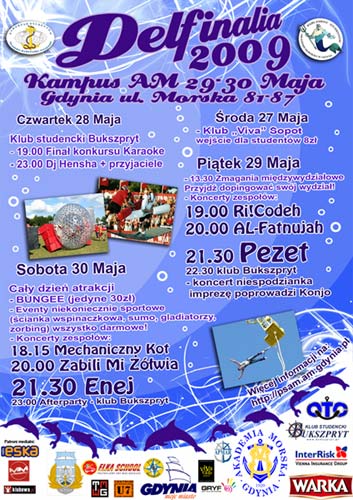 • Sopocki klub „VIVA”, w którym wszyscy chętni studenci będą mogli rozpocząć „DELFINALIA 2009”. Wejście za okazaniem legitymacji studenckiej będzie kosztować 8 zł. Na imprezie przedstawione będą prezentację obu samorządów studenckich AM i AMW.