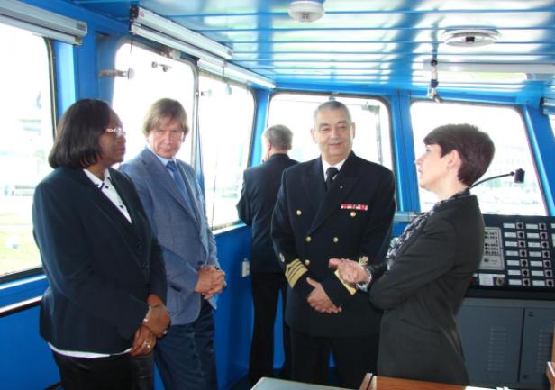 Pani minister zapoznała się z systemem kształcenia kadr morskich realizowanym w AMG, także praktyczną nauką zawodu prowadzoną na statkach szkoleniowych. Mówiono m.in. o dalszym rozwoju współpracy w zakresie morskich projektów edukacyjnych.