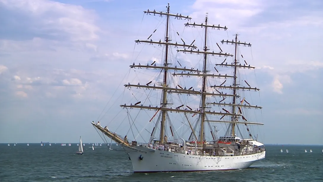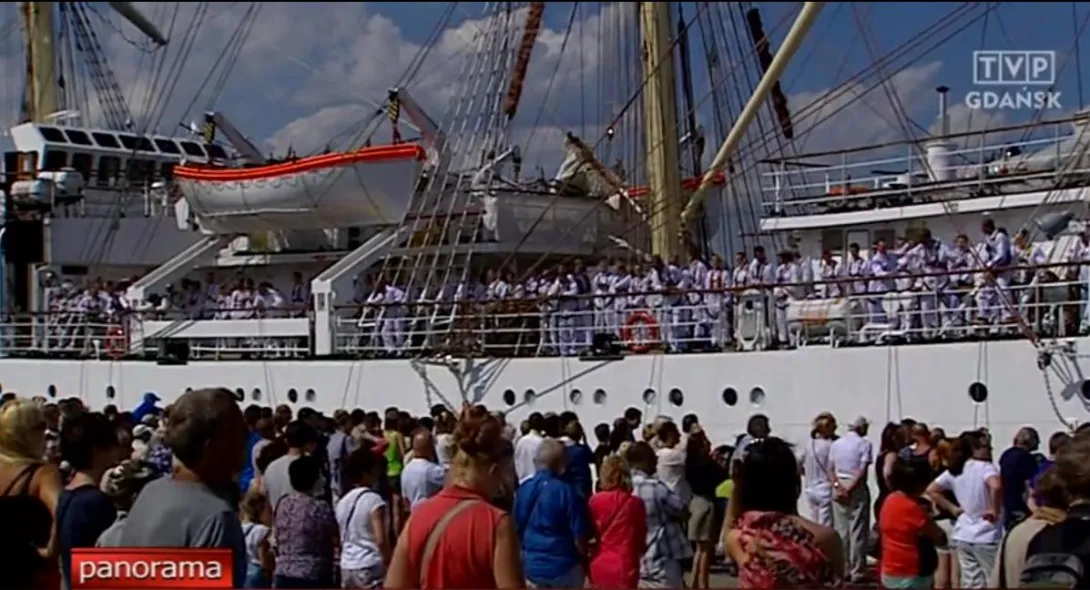 "Dar Młodzieży" jako pierwszy żaglowiec - uczestnik zlotu "Operacja Żagle Gdyni 2014" - zameldował się w gdyńskim porcie. Fregata Akademii Morskiej, pełniąca honorową rolę ambasadora zlotu, zaprezentowała się na wejściu w pełnej paradzie rejowej. Gdynianie i turyści szczelnie wypełnili końcówkę Mola Południowego i oklaskami powitali załogę oraz studentów. Wejście "Daru" relacjonowało wielu reporterów, m.in. "Panoramy" TVP Gdańsk, skąd także zapożyczyliśmy kilka filmowych kadrów.
