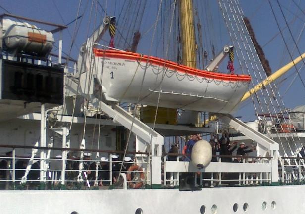Jak zwykle wypłynięcie "Daru Młodzieży" zgromadziło na Nabrzeżu Pomorskim liczną grupę żegnających - krewnych załogi i praktykantów oraz turystów. Ustawieni w paradzie burtowej umundurowani uczniowie pożegnali Gdynię wesołą meksykańską falą.