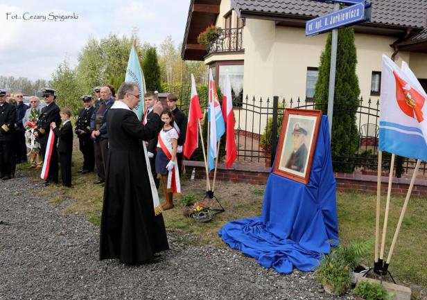Uroczystość odsłonięcia - a chyba raczej, oficjalnego wprowadzenia w skład miejskiej infrastruktury drogowej nowej ulicy, poprowadził wiceprzewodniczący Rady Miasta pan Jerzy Miotke. Gośćmi honorowymi ceremonii byli - córka Komendanta, pani Małgorzata Łobodzińska-Jurkiewicz i syn pan Andrzej Jurkiewicz. Oboje, w towarzystwie rektora Akademii Morskiej pana profesora Piotra Jędrzejowicza, dyrektor SP 39 im. Kazimierza Jurkiewicza pani Sabiny Dawidowskiej oraz pana kmdr por. Adama Duczmala, reprezentującego Akademię Marynarki Wojennej, przecinając bialo-czerwoną szarfę, wpisali w mapę Gdyni kolejny, swoisty pomnik Komendanta. Po zbudowaniu tutaj zaplanowanego osiedla, w wielu gdyńskich dowodach pojawi się adres: "ul. kpt.ż.w. Kazimierza Jurkiewicza".